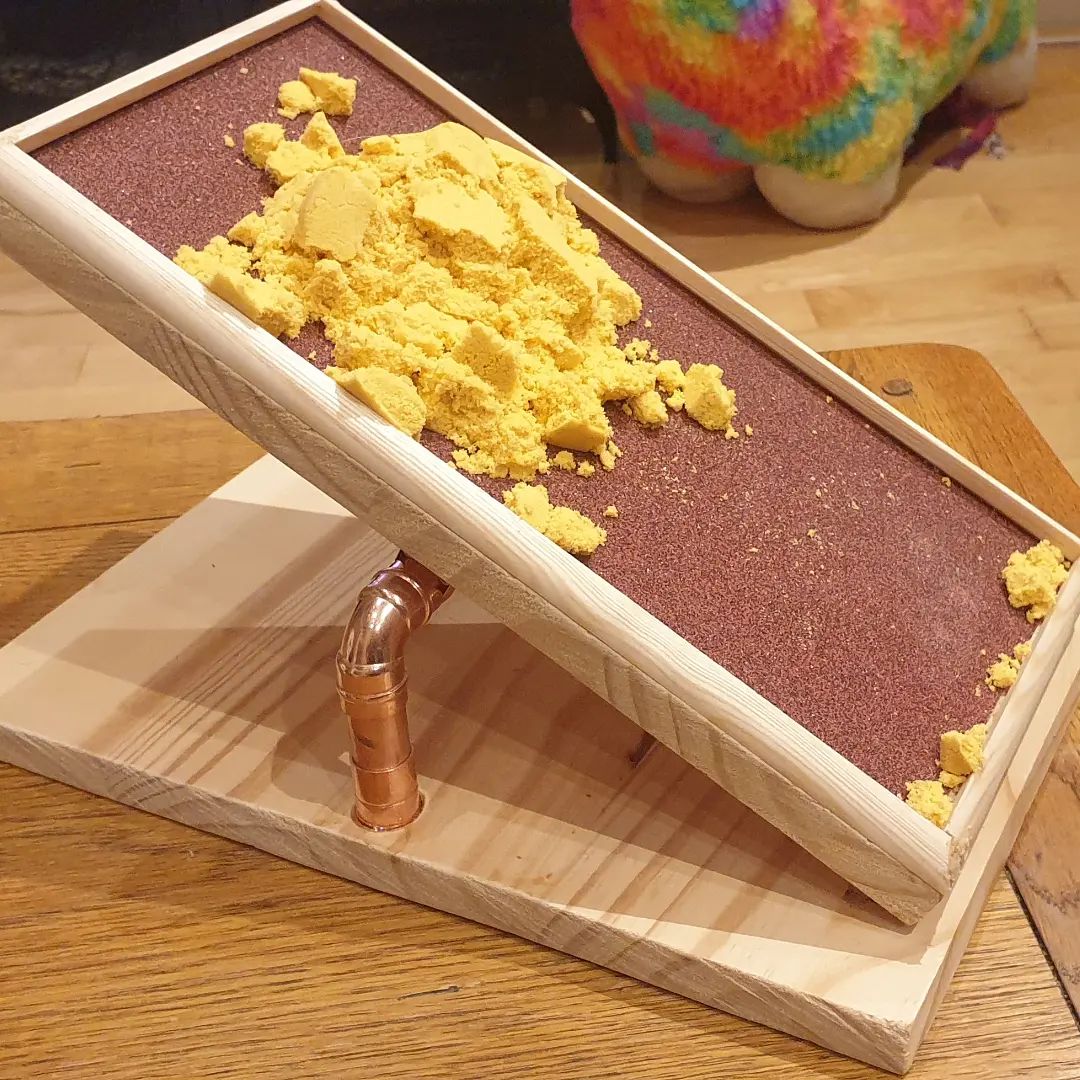 Kinetic sand on a sea-saw that can be tilted back and forth to provide a slow, abstract egg-timer. Removing the pressure involved in the passage of time. The sand makes it way down the slope without hurrying or intentionally slowing. It gets there when it’s meant to. No sooner or later.