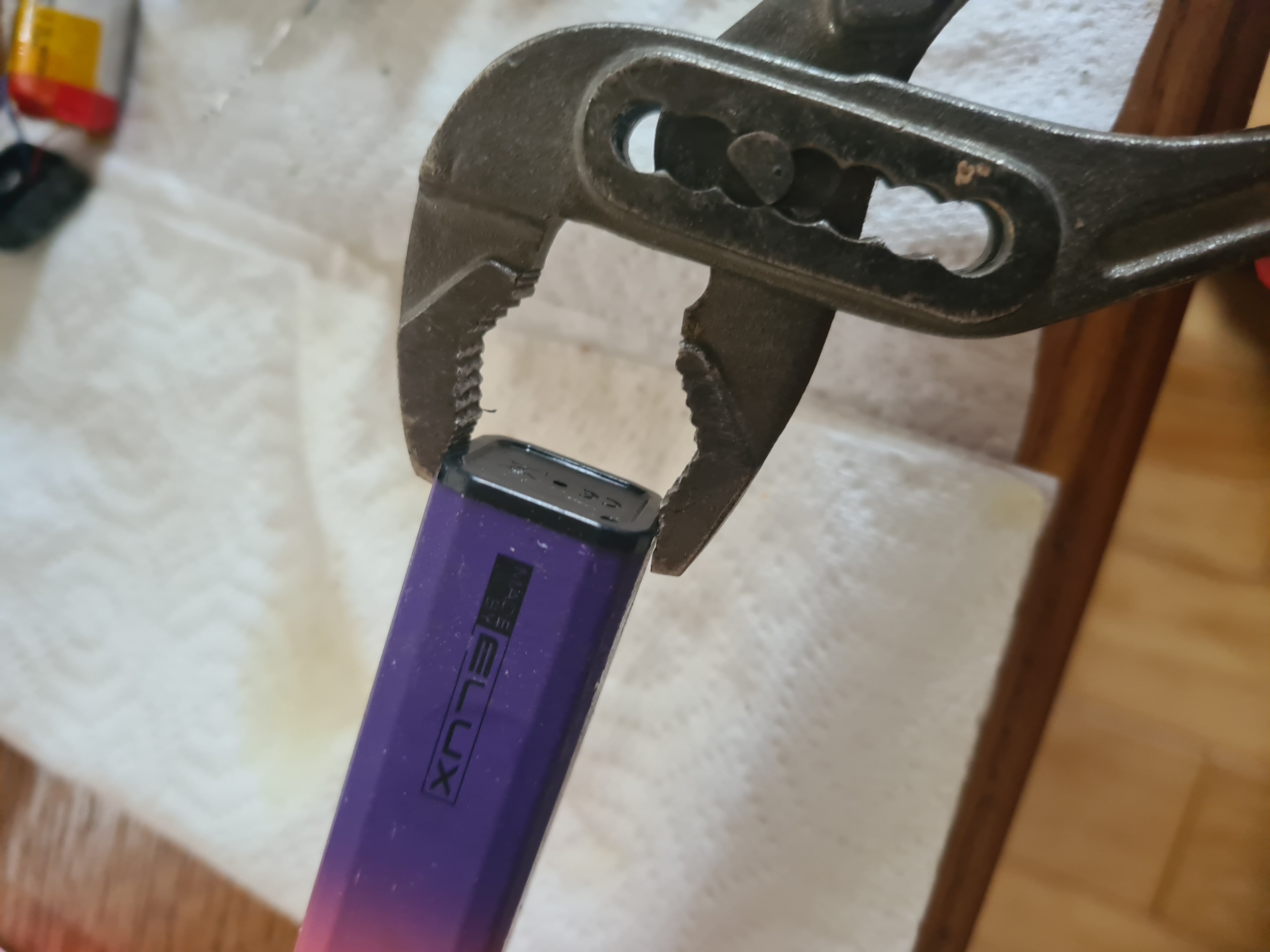 When you pull it out. You’ll get some quantity of the guts of the vape. We only want the battery part. Recycle (or in my case hoard) the rest.